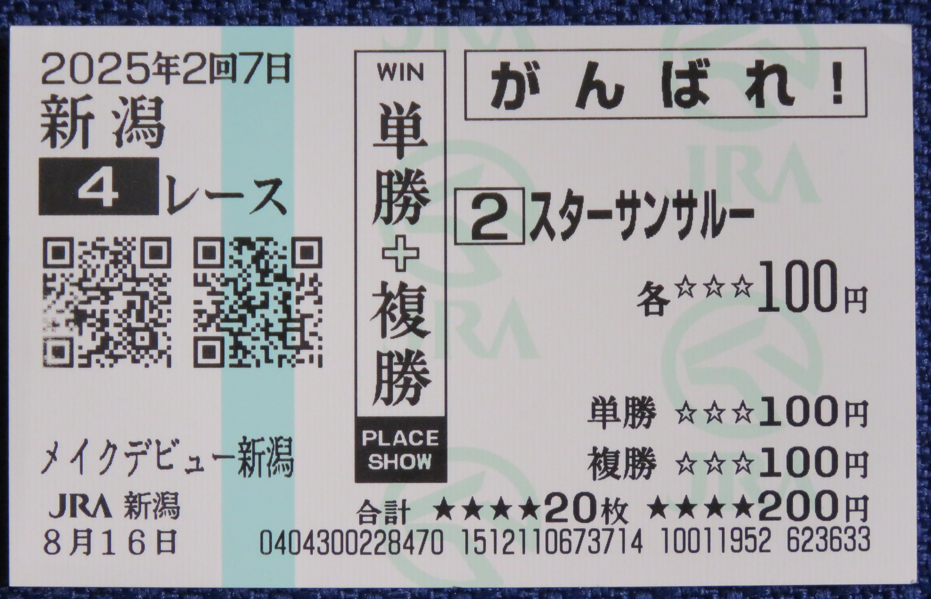 | 12 | スターサンサルー 2025/8/16 新潟競馬出走時勝馬投票券 |