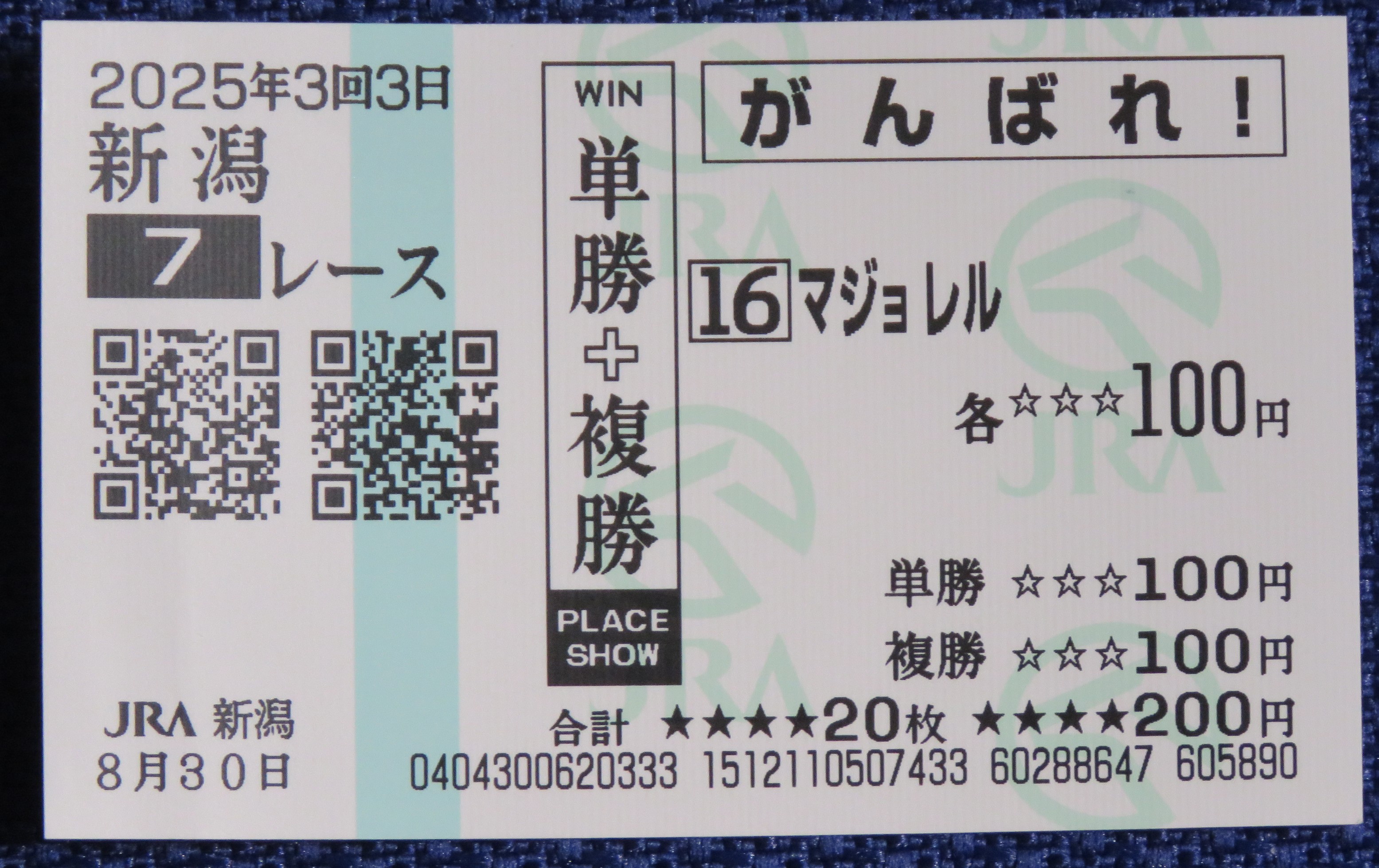 | 10 | マジョレル 2025/8/30 新潟競馬出走時勝馬投票券 |