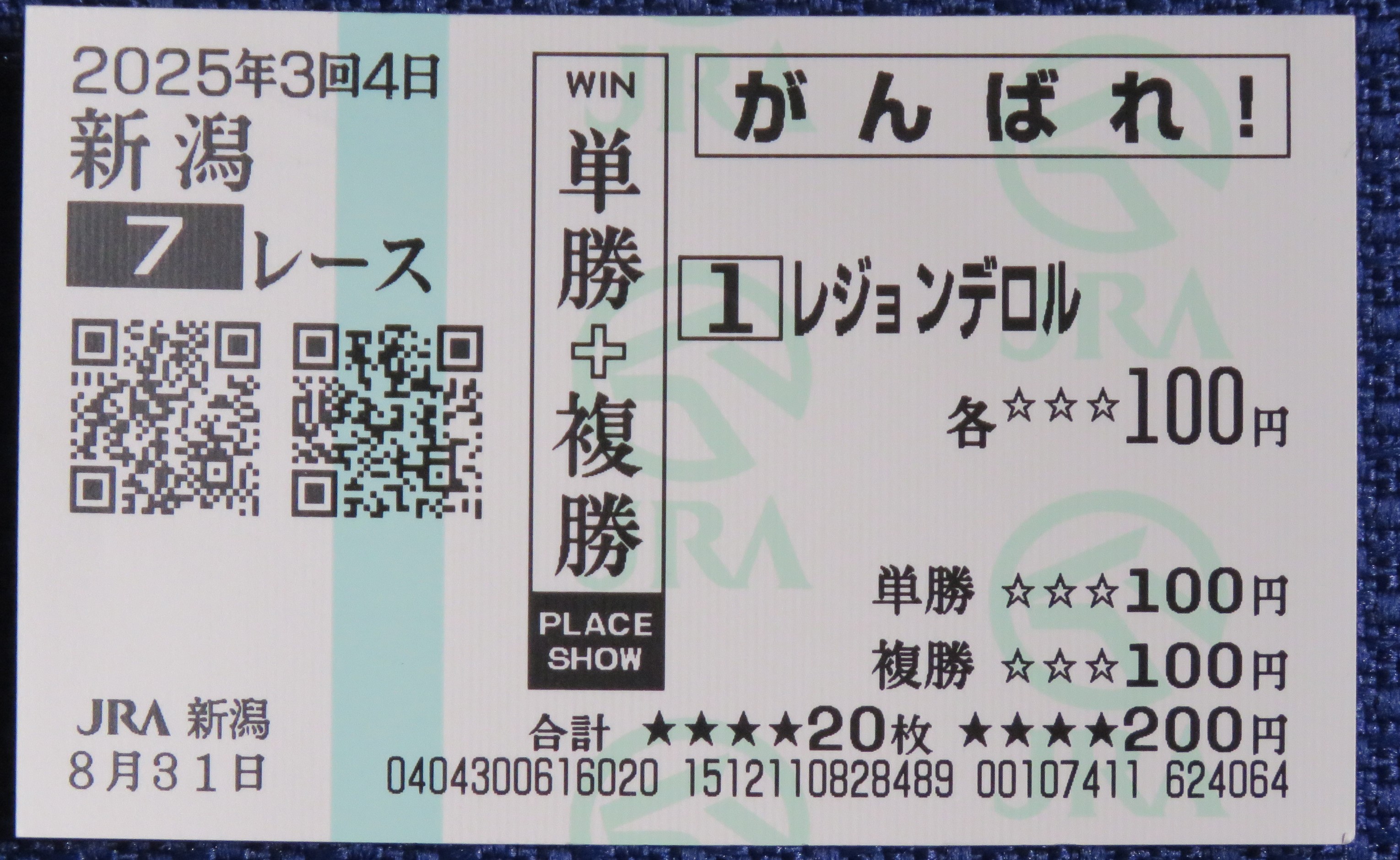 | 11 | レジョンデロル 2025/8/31 新潟競馬出走時勝馬投票券 |
