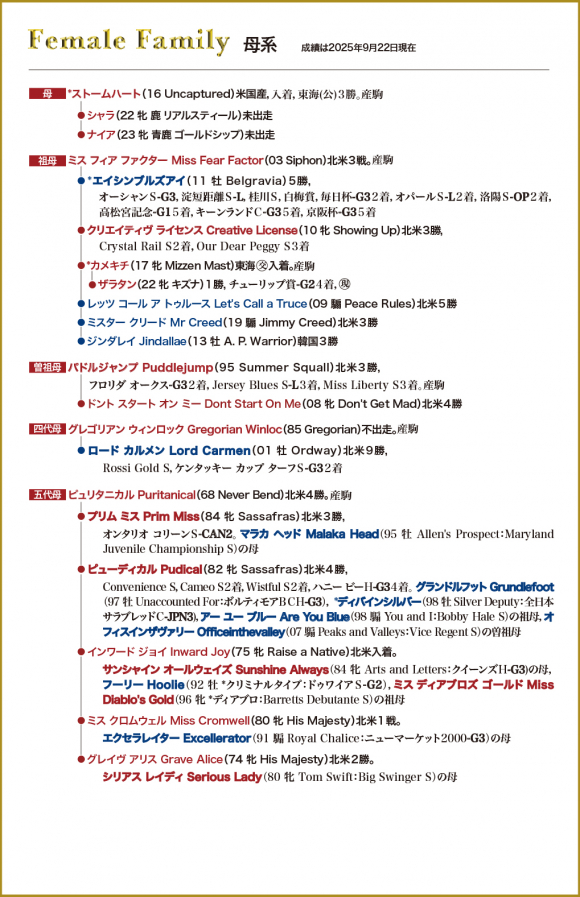 父:コントレイル 母:ストームハート (母の父:Uncaptured)